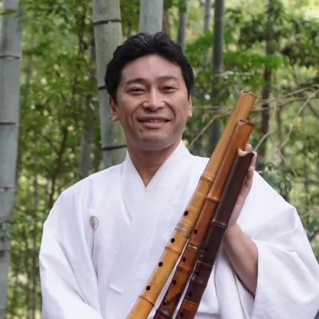 立命館大学在学中に尺八を始める。琴古流尺八、古典本曲を石川利光氏に師事。都山流尺八、尺八製作を西田仙秋山氏(三代目露秋)に師事。