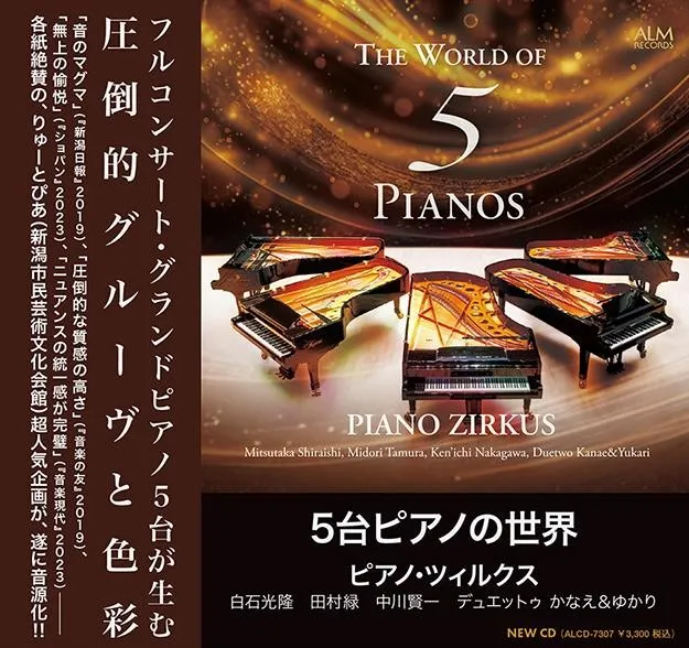 りゅーとぴあ(新潟市民芸術文化会館)の超人気企画〈ピアノ・ツィルクス『5台ピアノの世界』〉が、遂に音源化。それぞれに活躍する5名の手練れピアニストたちの渾身のアンサンブルは、ときにオーケストラをも凌駕する音の奔流となり渦を巻く。ピアノ音楽の新たな可能性をひらく【5台ピアノ】という表現形態の、想像を超える聴取体験! ![]()