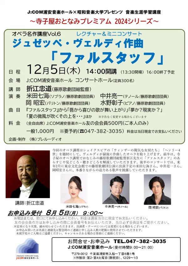 J:COM浦安音楽ホール×昭和音楽大学プレゼンツ 音楽生涯学習講座 寺子屋おとなみプレミアム 2024シリーズ