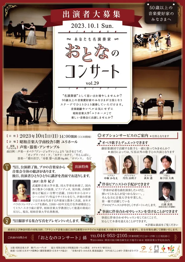 | 参加資格 | 50歳以上の方(コンサート当日時点の年齢/伴奏者、共演者は年齢不問) |