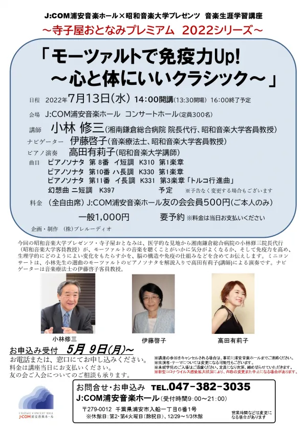 J:COM浦安音楽ホール×昭和音楽大学プレゼンツ 音楽生涯学習講座 寺子屋おとなみプレミアム 2022シリーズ