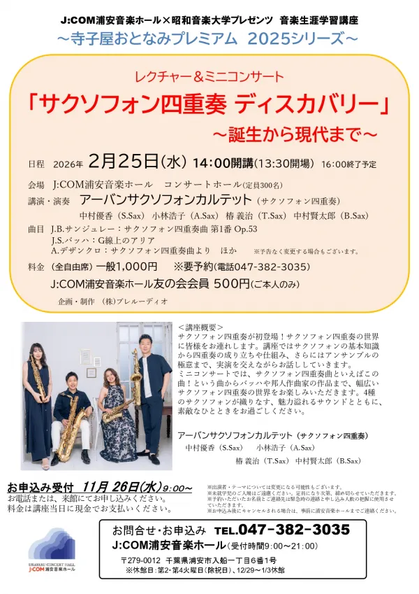 J:COM浦安音楽ホール×昭和音楽大学プレゼンツ 音楽生涯学習講座 寺子屋おとなみプレミアム 2025シリーズ