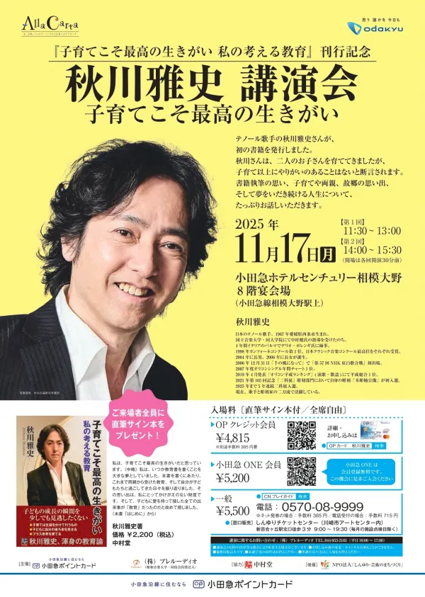 『子育てこそ最高の生きがい 私の考える教育』刊行記念 秋川雅史講演会